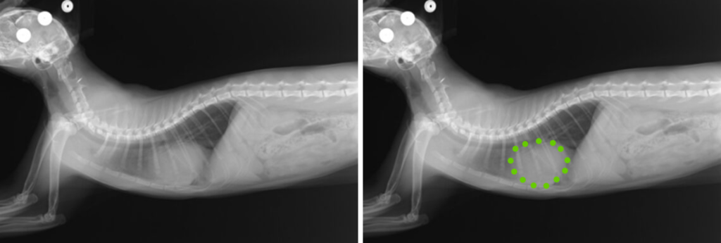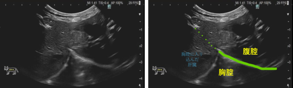 PPDHの診断には、胸部X線検査や超音波検査が有効であり、心膜腔内に腹部臓器が見られることで診断がつきます。場合によってはCT検査やMRIなどの高度画像診断も用いられ、他の胸腔内疾患との鑑別に役立ちます。
