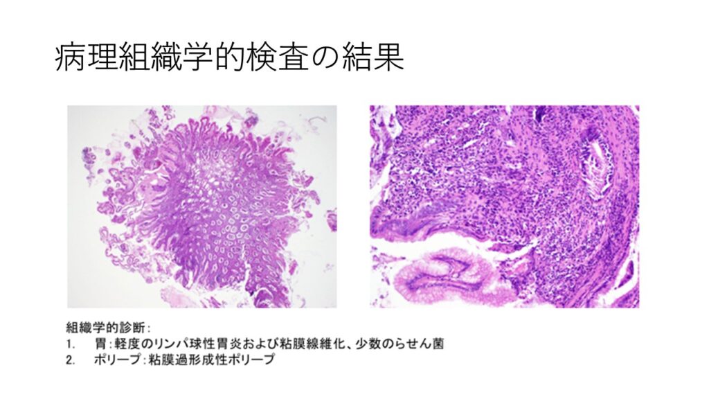 病理組織学的検査の結果は、粘膜過形成性ポリープとの診断でした。