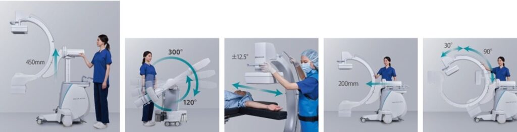 可動性があり、あらゆる角度からの撮影が可能となっています。そのため、手術中でもレントゲン撮影が可能となります。